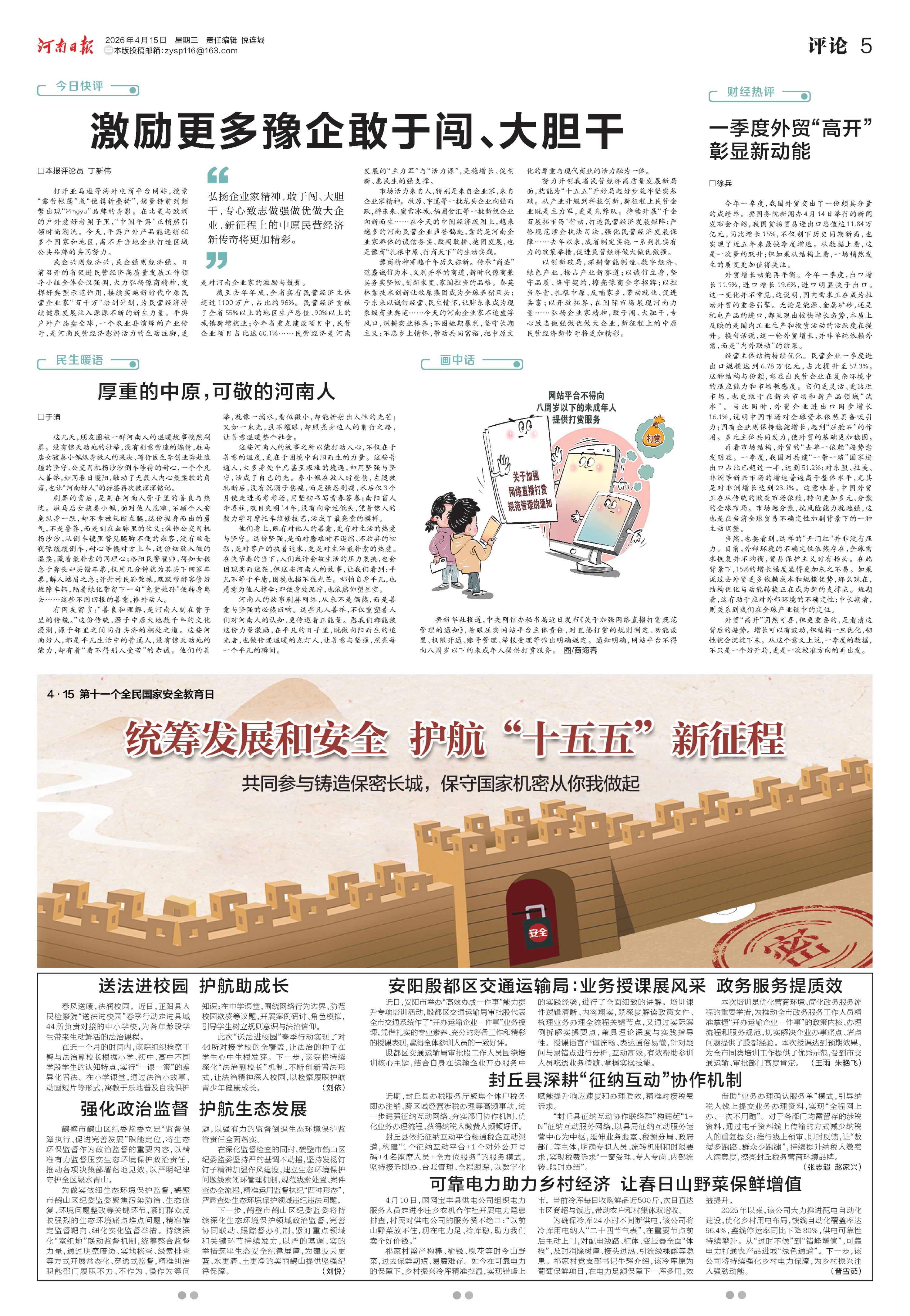 激励更多豫企敢于闯、大胆干(今日快评)