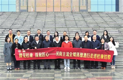 媒体团一行在洛阳杜康控股公司办公大楼前合影。