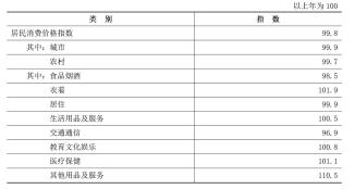 全年全省居民消费价格比上年下降0.2%。工业生产者出厂价格下降2.8%。工业生产者购进价格下降2.1%。农产品生产者价格下降5.7%。