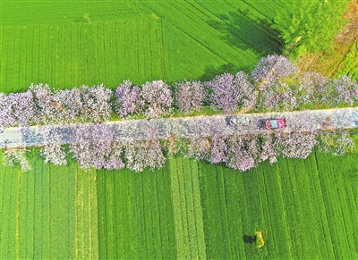 4月15日,在宁陵县乡村公路两侧,泡桐花竞相绽放。吕忠箱 摄