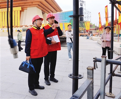 保电工作人员紧盯核心用电设备,每10分钟精准测量一次用电负荷,确保彩排及大典期间用电安全稳定。