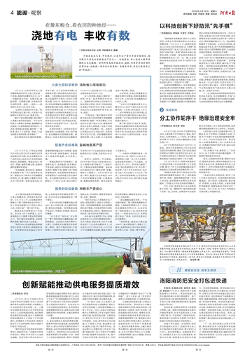 赵红旗和村民们遇到的难题,并非个例。由于自然条件限制,河南粮食作物主要依靠农田机井进行灌溉。为彻底解决农田机井及配套电力设施管护不到位、布局不合理等问题,2020年,省政府办公厅印发《河南省理顺农业灌溉用电设施建管体制实施方案》,明确了全省农田机井新增和存量10千伏高压用电设施部分由国网河南省电力公司负责建设改造并管护;新增和存量380伏低压用电设施部分,由县级政府农业农村部门负责建设改造,村委等方面选派的“井长”、机井管理员等负责管护。