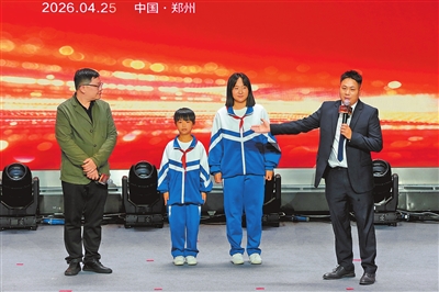 来自郑州市金沙小学的体育老师马超群和学生代表与作家互动。本报全媒体记者 王铮 聂冬晗 摄