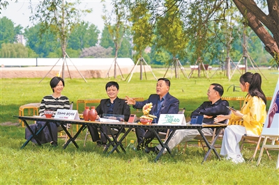 嘉宾们在大河村国家考古遗址公园畅谈。本报全媒体记者 宋若旻 摄